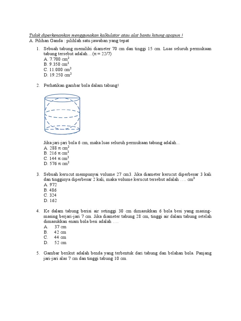 Soal Bangun Ruang Tabung Atau Silinder Plus Kunci Jawaban Juragan Les from 1.bp.blogspot.com We did not find results for: Check spelling or type a new query. Luas permukaan tabung jari jari 7 tinggi 15. Maybe you would like to learn more about one of these?